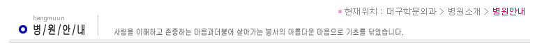 ´ë±¸ ¼ö¼º±¸ ½ÃÁöµ¿¿¡ À§Ä¡ÇÑ ´ë±¸ Çй®¿Ü°ú´Â Ç×¹®ÁúȯÀÇ ±ÇÀ§ÀÎ ÀϺ» µ¿°æ »çȸº¸Çè Áß¾Óº´¿ø ´ëÀåÇ×¹® ¼¾Å¸¿¡¼ ¿¬¼ö¸¦ ¸¶Ä¡°í Àü¹®ÀÇ 2¸íÀÌ Áø·á,¼ö¼úÇÏ´Â Â÷º°ÈµÈ Ç×¹®Áúȯº´¿øÀÔ´Ï´Ù.